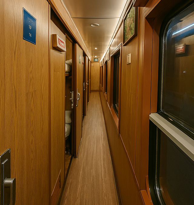 Sapaly train offers the best train trip experience with 2 types of cabins. The Deluxe 4 berth cabins and the VIP 2 berth cabins.